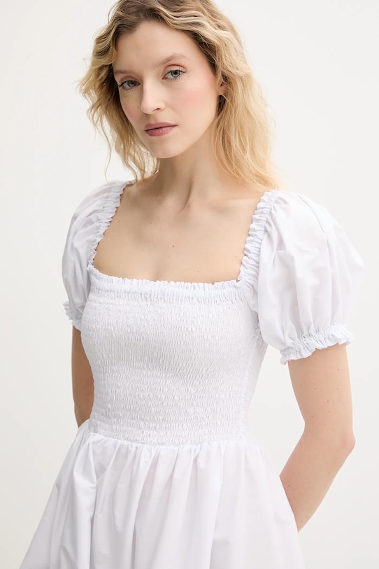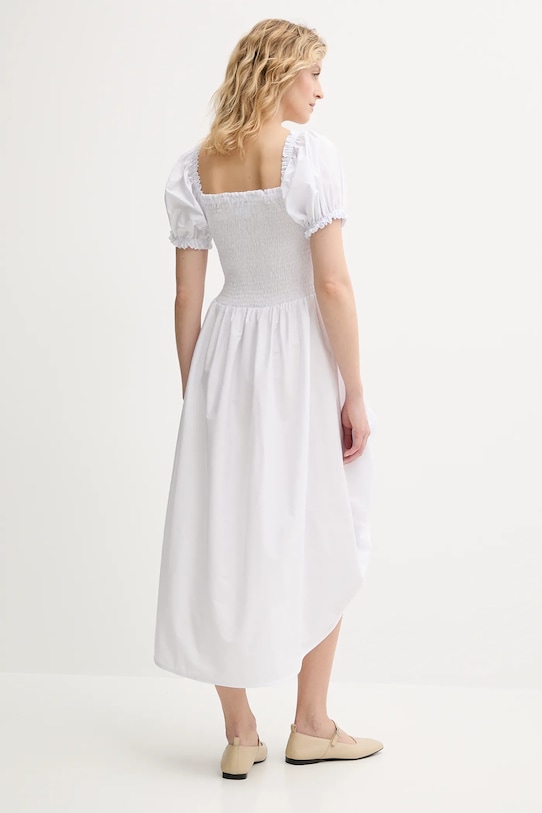 Это платье из коллекции The Sleeper выполнено из тонкой, неэластичной ткани. Модель выполнена из исключительно комфортного хлопкового материала. - Расклешенный крой. - Короткий рукав. - Модель с эластичной вставкой. - В зависимости от расположения рукавов его можно носить с испанским или ромбовидным вырезом. - У него есть щель. - Длина: 115 см. - Ширина под мышками: 30 см. - Размеры указаны для размера: S.