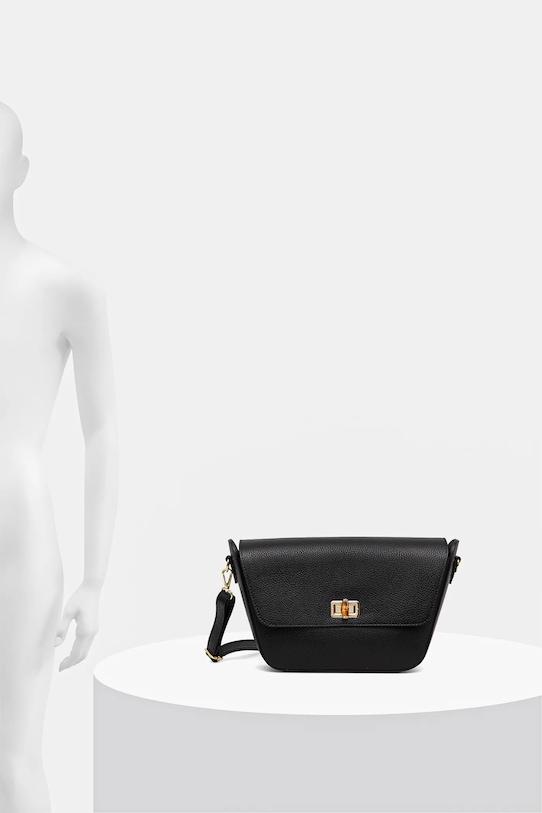 Сумка среднего размера из коллекции Answear.LAB. Модель на молнии, выполнена из экокожи. - Застежка-молния и поворотный замок. - Имеет два внутренних кармана: один прорезной, другой на молнии. - Модель на подкладке. - Не подходит для формата А4. - Съемный регулируемый ремешок. - Входящий в комплект тканевый чехол защищает изделие от пыли. - Глубина: 7,5 см. - Высота: 20 см. - Ширина у основания: 25 см.
