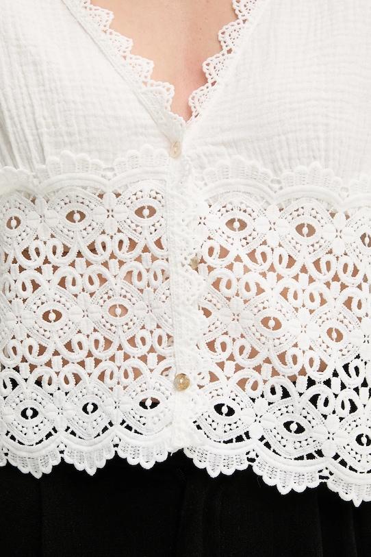 Эта рубашка Answear.LAB выполнена из тонкой, неэластичной ткани. Модель выполнена из дышащего хлопкового материала. - Рубашка свободного кроя отличается свободным кроем, обеспечивает комфорт и не стесняет движений. - Декоративный, заостренный вырез. - Модель с декоративной вышивкой. - Застежка на пуговицы. - Длина: 47 см. - Длина рукава: 51 см. - Ширина под мышками: 53 см. - Размеры указаны для размера: S.