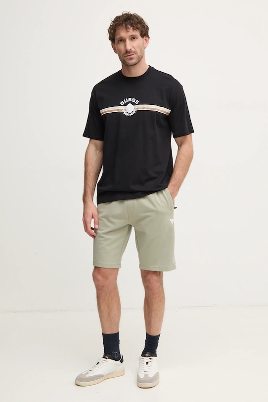 Шорты из коллекции Guess. Изготовлены из слегка эластичного материала, обеспечивают комфорт и свободу движений. - Простой дизайн, не стесняющий движений. - Эластичный пояс со шнурками. - Два прорезных боковых кармана на молнии. - Модель с принтом. - Ширина талии: 40 см. - Ширина бедер: 57 см. - Высота талии: 30 см. - Ширина штанины: 30 см. - Длина штанины: 51 см. - Размеры указаны для размера: M.