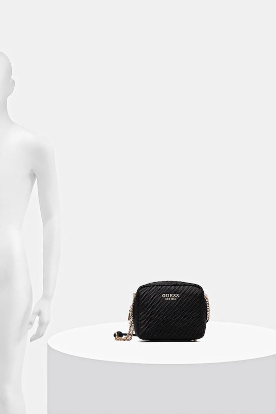 Небольшая сумочка из коллекции Guess. Модель с застёжкой-крючком, выполнена из синтетического материала. - Отделение на молнии. - Имеет внутренний карман на молнии и отделения для карт. - Не подходит для формата А4. - Несъемный, нерегулируемый ремешок. - Входящий в комплект тканевый чехол защищает изделие от пыли. - Длина ремешка: 124 см. - Глубина: 7 см. - Высота: 15 см. - Ширина у основания: 17 см.