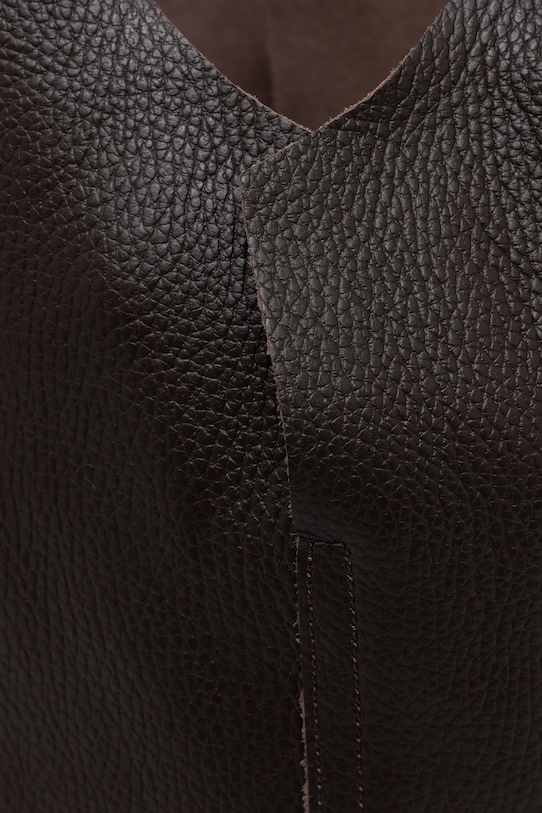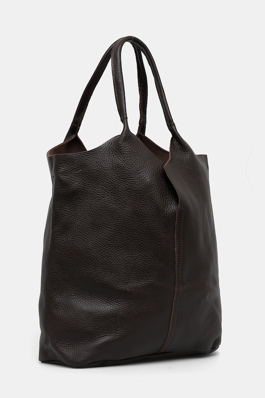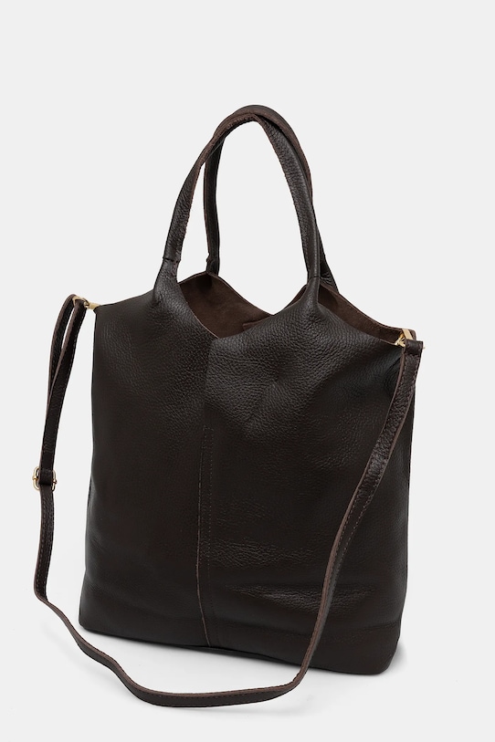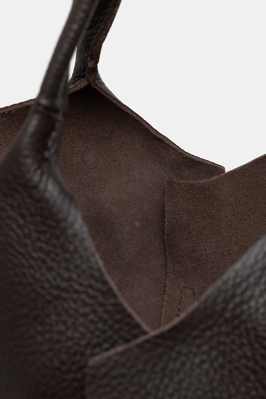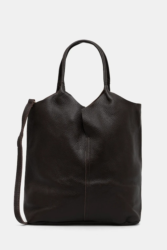 Большая сумка из коллекции Answear LAB. Не застегивается, выполнена из натуральной кожи. - Входящий в комплект тканевый чехол защищает изделие от пыли. - Имеет ручки и съемный регулируемый ремень. - Вмещает формат А4. - Модель без подкладки. - Минимальная длина ремешка: 65 см. - Максимальная длина ремня: 115 см. - Длина ручки: 38 см. - Глубина: 10 см. - Высота: 32 см. - Ширина у основания: 31 см.