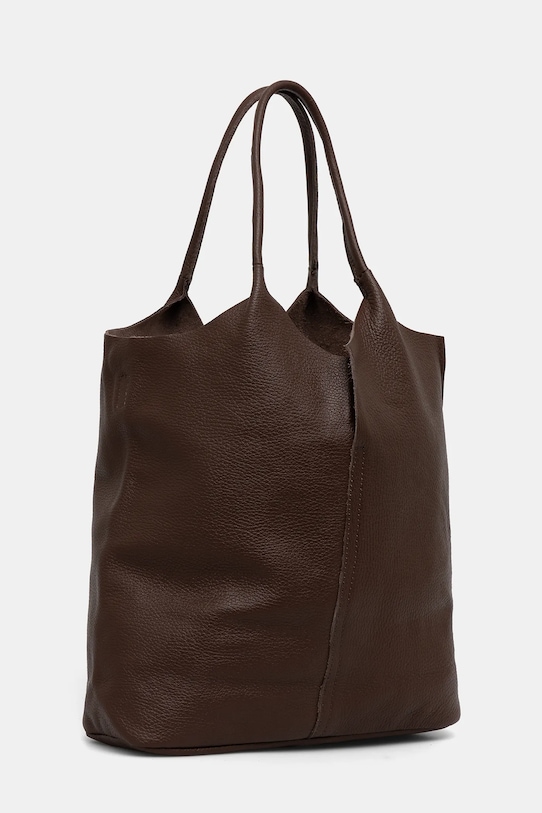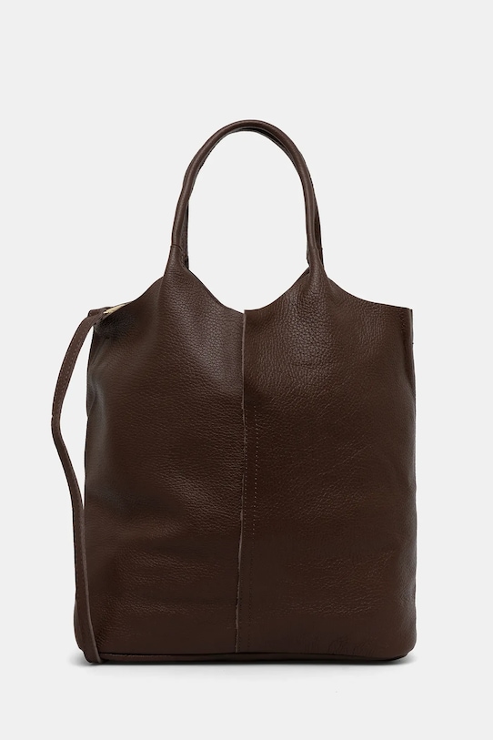 Большая сумка из коллекции Answear LAB. Не застегивается, выполнена из натуральной кожи. - Входящий в комплект тканевый чехол защищает изделие от пыли. - Имеет ручки и съемный регулируемый ремень. - Вмещает формат А4. - Модель без подкладки. - Минимальная длина ремешка: 65 см. - Максимальная длина ремня: 115 см. - Длина ручки: 38 см. - Глубина: 10 см. - Высота: 32 см. - Ширина у основания: 31 см.