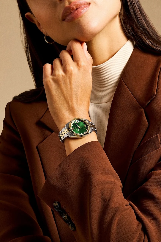 Часы из коллекции Fossil. Модель имеет круглый циферблат и браслет, напоминающий драгоценный камень. - Механизм: кварцевый, питание от батареек. - Стекло: минеральное (закаленное, очень устойчивое к ударам, трудно царапается). - Водонепроницаемость: WR. 50M (5ATM) - устойчив к брызгам, плаванию на поверхности. - На нем есть штамп с датой. - Ширина корпуса: 31 мм. - Толщина корпуса: 9 мм. - Высота корпуса: 38 мм.
