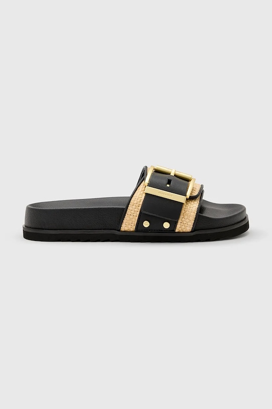 Шлёпанцы из коллекции AllSaints. Изготовлены из натуральной кожи и оснащены подошвой из ЭВА для лёгкости, комфорта и превосходной амортизации. - Застежка-пряжка со штифтом для индивидуальной подгонки. - Анатомическая стелька поддерживает свод стопы и обеспечивает длительный комфорт. - Уютный салон. - Подошва из пеноматериала обеспечивает более мягкое ощущение и дополнительную амортизацию. - Высота платформы: 2,1 см.