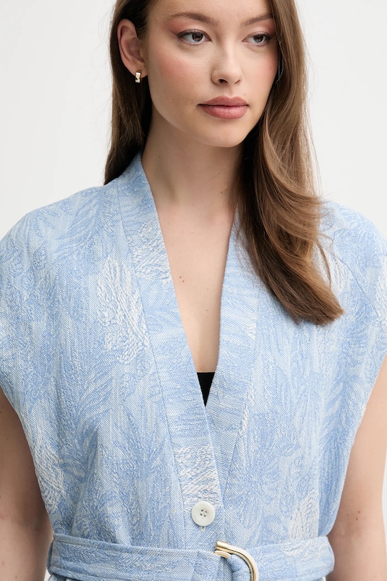 Этот жилет из коллекции La Petite Française выполнен из ткани с узором. Модель выполнена из исключительно комфортного материала с высоким содержанием хлопка. - Свободный крой, обеспечивающий полную свободу движений. - Застежка на пуговицы. - Модель на подкладке. - Два боковых накладных кармана. - Текстильный ремешок в комплекте. - Длина: 70 см. - Ширина под мышками: 52 см. - Размеры указаны для размера: 36.