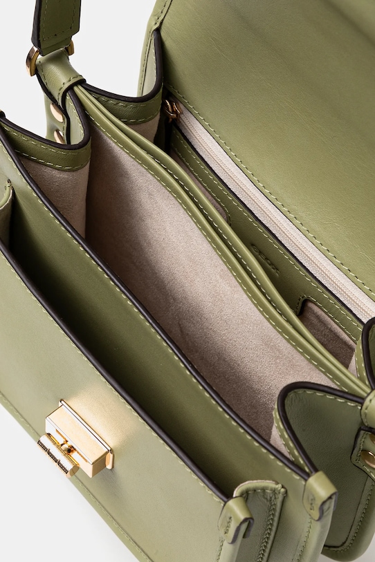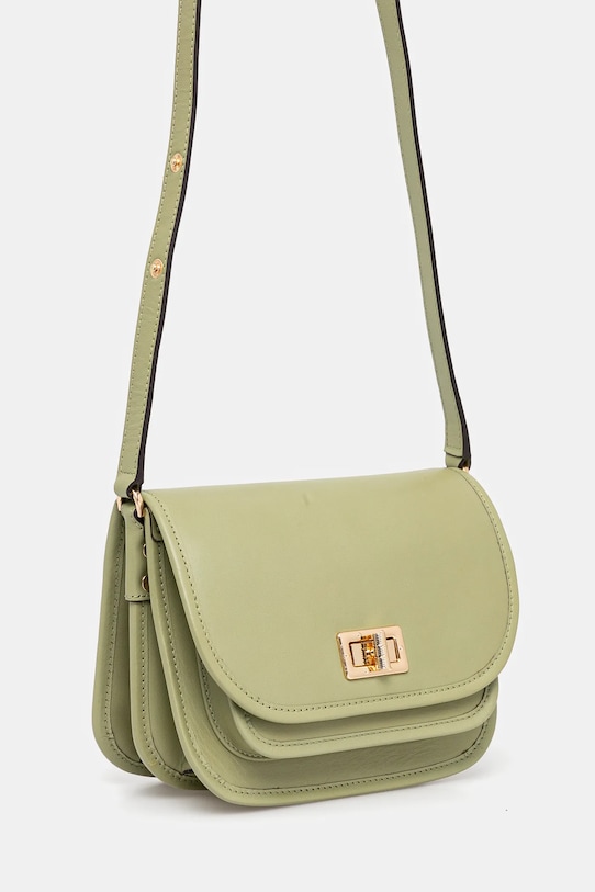 Небольшая сумочка из коллекции Geox. Модель на молнии, выполнена из натуральной кожи. - Поворотная застежка. - Несъемный, регулируемый ремешок. - Не подходит для формата А4. - Количество внутренних отделений: 2. - Количество внутренних накладных карманов: 2. - Количество отделений на молнии: 1. - Количество внешних накладных карманов: 1. - Глубина: 9 см. - Высота: 17 см. - Ширина у основания: 21 см.