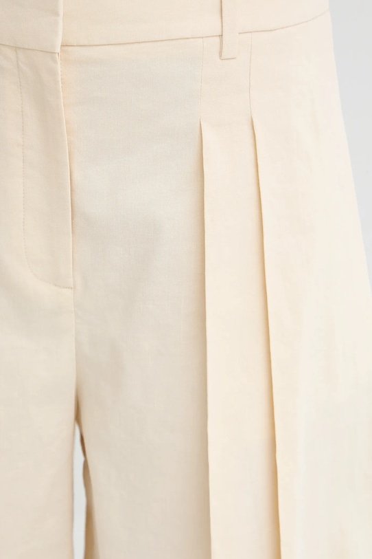 Шорты из коллекции Theory, выполненные из гладкой ткани. Модель выполнена из дышащего материала с высоким содержанием льна. - Простой дизайн, не стесняющий движений. - Застежка на молнию, пуговицы и крючок. - Два накладных кармана спереди. - Ширина талии: 37 см. - Ширина бедер: 52 см. - Высота талии: 32 см. - Длина внешней части штанины: 43 см. - Ширина штанины: 39 см. - Размеры указаны для размера: 34.