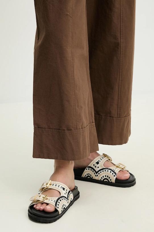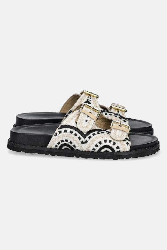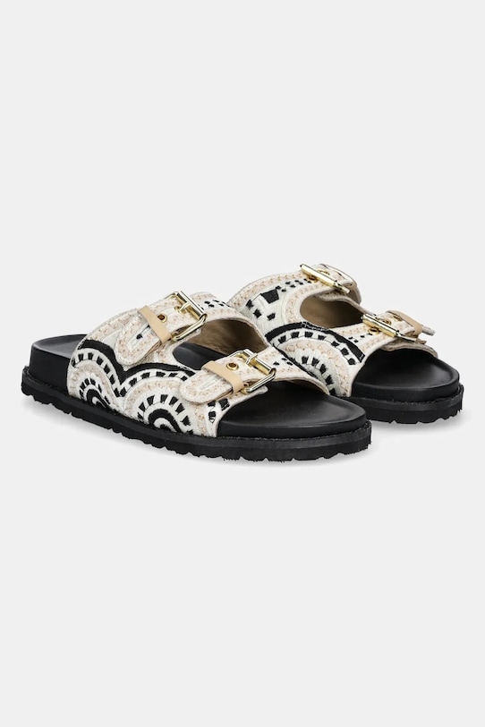 Эти шлёпанцы из коллекции Answear.LAB изготовлены из текстиля. Эти лёгкие и удобные слипоны идеально подойдут для повседневной носки. - Подошва из пеноматериала обеспечивает более мягкое ощущение и дополнительную амортизацию. - Регулируемые ремешки обеспечивают оптимальную посадку по ноге. - Профилированная, мягкая стелька гарантирует комфорт использования. - Длина вставки: 23 см. - Размеры указаны для размера: 36.