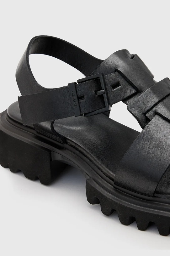 Сандалии из коллекции AllSaints. Изготовлены из натуральной кожи. - Подошва из ЭВА обеспечивает более мягкое ощущение и дополнительную амортизацию. - Застежка-пряжка со штифтом для индивидуальной подгонки. - Кожаная стелька комфортна для стопы и предотвращает натирание, потертости и появление неприятного запаха. - Модель с блочным каблуком. - Рифленая подошва. - Гладкий материал. - Модель с открытой пяткой.