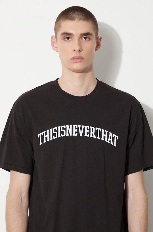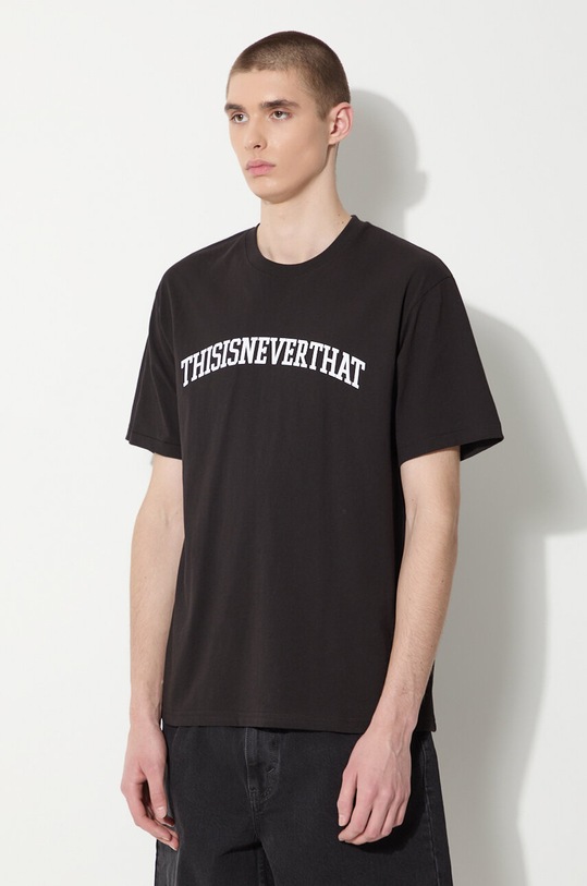 Эта футболка из коллекции thisisneverthat выполнена из тонкой, слегка эластичной ткани с высоким содержанием хлопка. - Свободный крой, обеспечивающий полную свободу движений. - Круглый ребристый вырез. - Короткий рукав. - Крой рукава со спущенной линией плеча не ограничивает подвижность. - Графический логотип бренда спереди. - Длина: 72 см. - Ширина под мышками: 55 см. - Размеры указаны для размера: M.