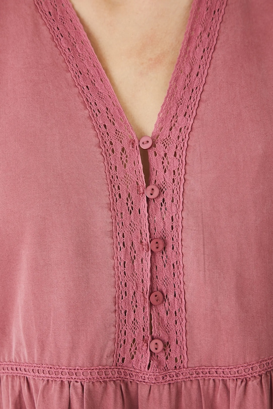 Платье из коллекции «Медицина». Свободного кроя, выполнено из гладкой ткани. - Свободный покрой. - Короткие рукава кимоно. - Острый вырез. - Короткая планка с пуговицами. - Модель с декоративными оборками. - Декоративная отделка. - Декоративные вставки. - Гладкая ткань. - Модель мини-длины. - Ширина талии: 49 см. - Ширина груди: 57,5 см. - Длина: 91 см. - Размеры указаны для размера: S.