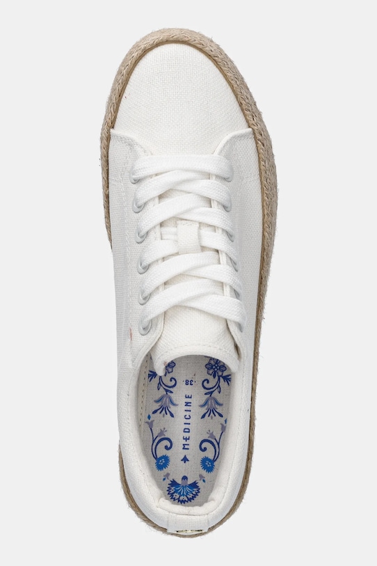 Кроссовки из коллекции Medicine. Изготовлены из текстильного материала. - Круглый нос. - Усиленный задник. - Уютная хлопковая подкладка. - Подошва изготовлена из комбинации резины и джута. - Удобная поролоновая вставка из хлопчатобумажной ткани. - Модель на шнуровке. - Декоративная деталь. - Материал с ноткой льна. - Гладкий материал. - Длина вставки: 24,5 см. - Размеры указаны для размера: 38.