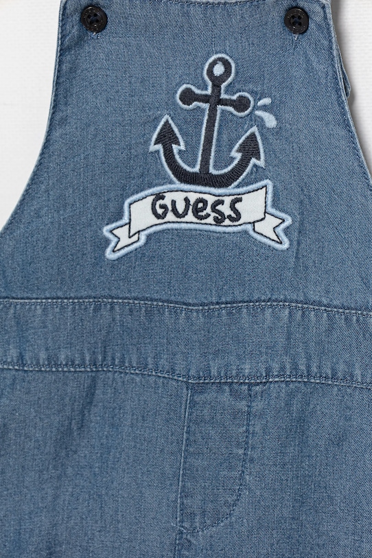 Детский комплект из коллекции Guess. Изготовлен из комбинации разных материалов. Лиоцелл — это шёлкоподобная ткань из древесной целлюлозы. Этот материал производится экологичным способом, без использования токсичных веществ. - Простой дизайн, не стесняющий движений. - Классический круглый вырез. - Короткая застежка-кнопка обеспечивает эффективную вентиляцию и легкость надевания и снимания. - Модель с аппликацией.