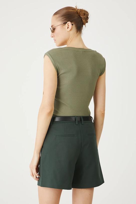 Шорты из коллекции Medicine. Изготовлены из гладкой ткани. - Стиль «Чино». - Модель со стандартной талией, застегивающаяся на молнию и крючок. - Ремешок из эко-кожи в комплекте. - Два боковых накладных кармана. - Гладкая ткань. - Ширина талии: 37 см. - Ширина бедер: 50 см. - Высота талии: 27 см. - Ширина штанины внизу: 33 см. - Длина по внутреннему шву: 15 см. - Размеры указаны для размера: S.