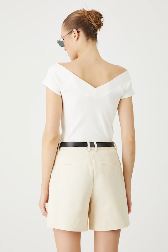 Шорты из коллекции Medicine. Изготовлены из гладкой ткани. - Стиль «Чино». - Модель со стандартной талией, застегивающаяся на молнию и крючок. - Ремешок из эко-кожи в комплекте. - Два боковых накладных кармана. - Гладкая ткань. - Ширина талии: 37 см. - Ширина бедер: 50 см. - Высота талии: 27 см. - Ширина штанины внизу: 33 см. - Длина по внутреннему шву: 15 см. - Размеры указаны для размера: S.