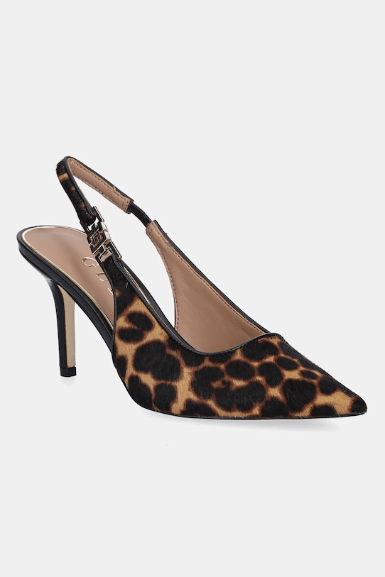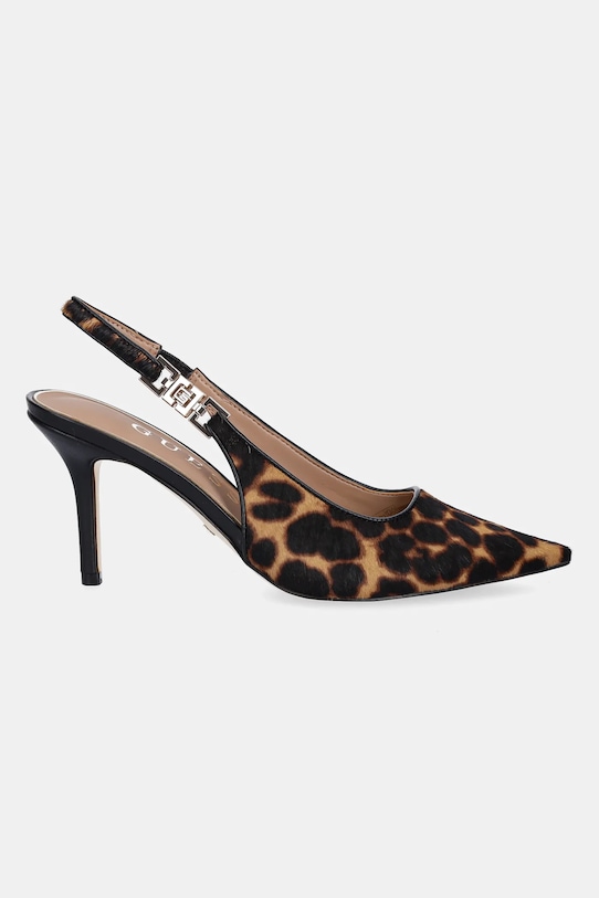 Эти туфли-шпильки Guess изготовлены из комбинации натуральной щетины и синтетических материалов. Эффектная модель для особых случаев. - Заостренный, жесткий нос. - Модель с открытой пяткой. - Эластичная вставка обеспечивает индивидуальную посадку. - Уютный салон. - Резиновая подошва прочная и устойчивая к повреждениям. - Высота каблука: 9 см. - Длина вставки: 25 см. - Размеры указаны для размера: 37.