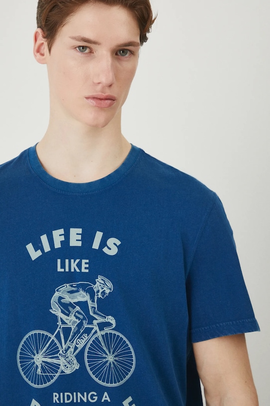 Футболка из коллекции «Медицина». Изготовлена из трикотажного полотна с принтом. - Обычная посадка. - Короткий рукав. - Круглый вырез. - Модель с принтом. - Надпись спереди: Жизнь как езда на велосипеде — чтобы сохранить равновесие, нужно постоянно двигаться. - Принт с изображением велосипеда. - Материал с эффектом стирки. - Длина: 75 см. - Ширина груди: 57,2 см. - Размеры указаны для размера: L.