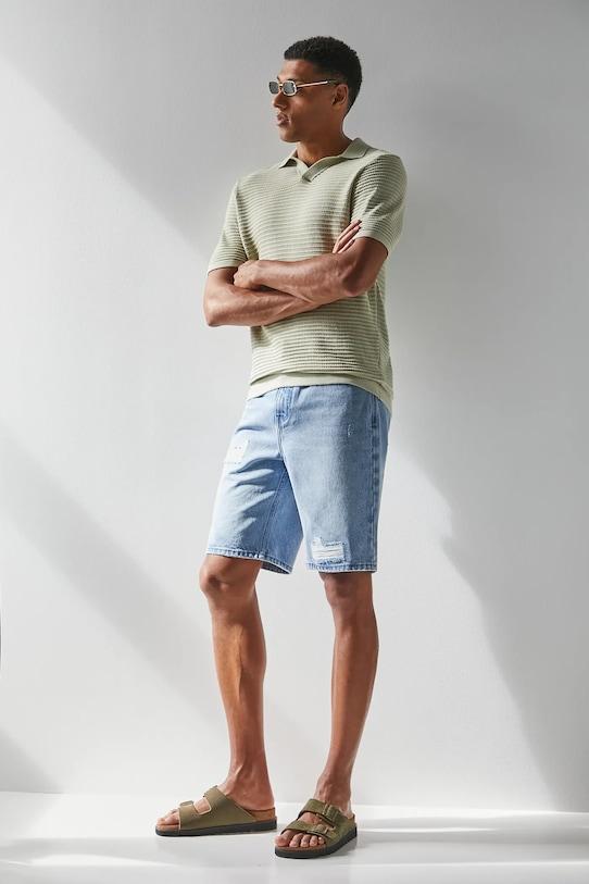 Шорты из коллекции Medicine. Изготовлены из потертого денима. - Свободный покрой. - Обхват талии обычный. - Застежка на пуговицы и молнию. - Накладные карманы. - Декоративные потертости. - Декоративно выстиранный деним. - Ширина талии: 42 см. - Ширина бедер: 55 см. - Высота талии: 31,5 см. - Ширина штанины внизу: 28 см. - Длина по внутреннему шву: 26 см. - Размеры указаны для размера: 31.