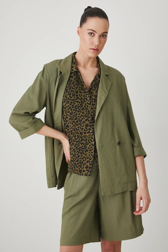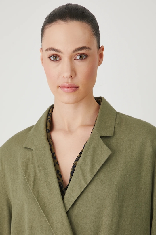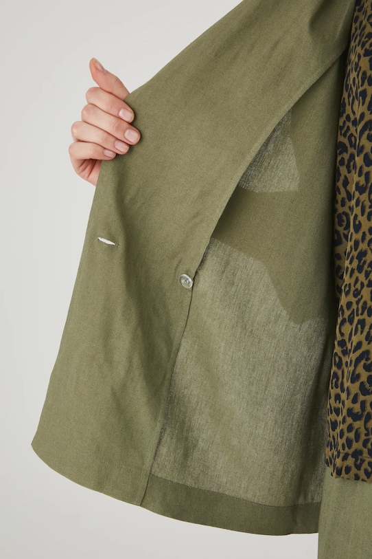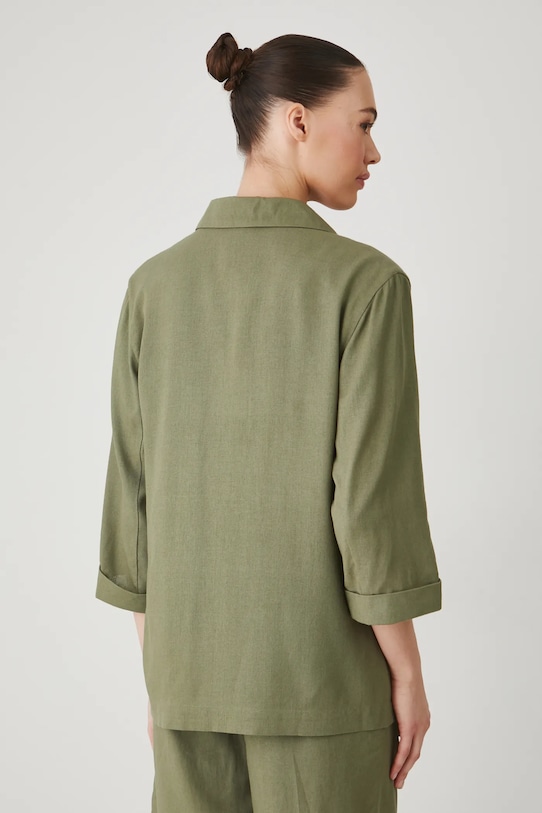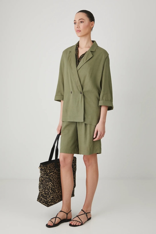 Кимоно из коллекции «Medicine». Изготовлено из смесовой льняной ткани. - Материал с добавлением льна обеспечивает комфорт и воздухопроницаемость. - Обычная посадка. - Рукав три четверти. - Двубортный пиджак с застежкой на пуговицы. - Классические лацканы. - Модель без подкладки. - Гладкая ткань. - Длина: 73 см. - Ширина груди: 52,5 см. - Ширина плеч: 44,5 см. - Размеры указаны для размера: S.