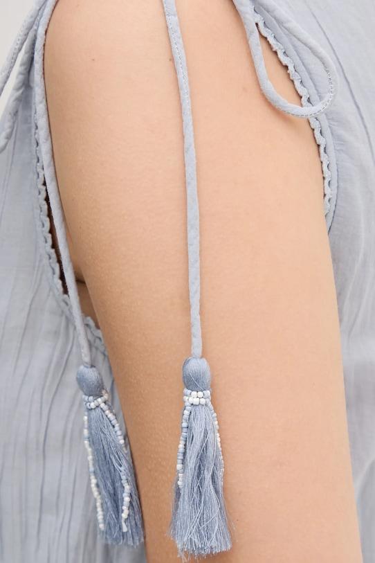 Это платье из коллекции Pepe Jeans выполнено из тонкой, неэластичной ткани. Модель выполнена из дышащего материала с высоким содержанием хлопка. - Модель мини-длины. - Острый вырез. - Эластичный пояс. - Дополнительный слой материала в виде подкладки. - Модель с декоративными завязками. - Модель с декоративной бахромой. - Длина: 88 см. - Ширина под мышками: 45 см. - Размеры указаны для размера: S.