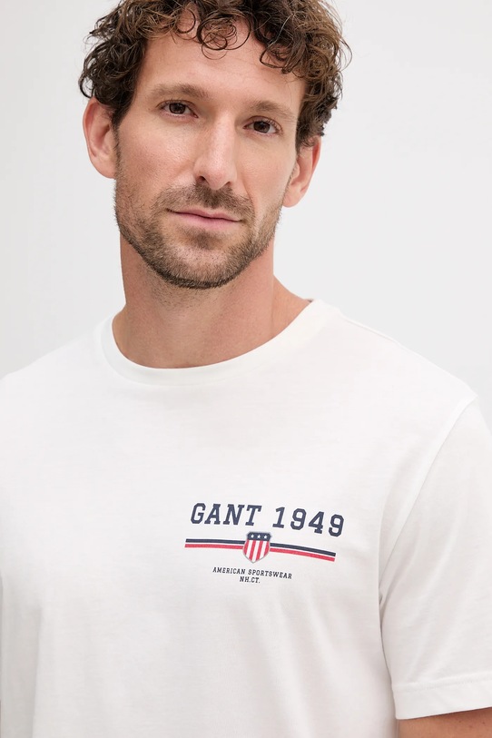 Футболка из коллекции Gant выполнена из тонкой, эластичной ткани. Модель выполнена из исключительно комфортного хлопкового материала. - Обычная посадка. - Классический круглый вырез. - Плоские швы защищают кожу от натирания и раздражения и обеспечивают высокий уровень комфорта во время занятий спортом. - Модель с принтом на груди. - Длина: 74 см. - Ширина под мышками: 54 см. - Размеры указаны для размера: M.