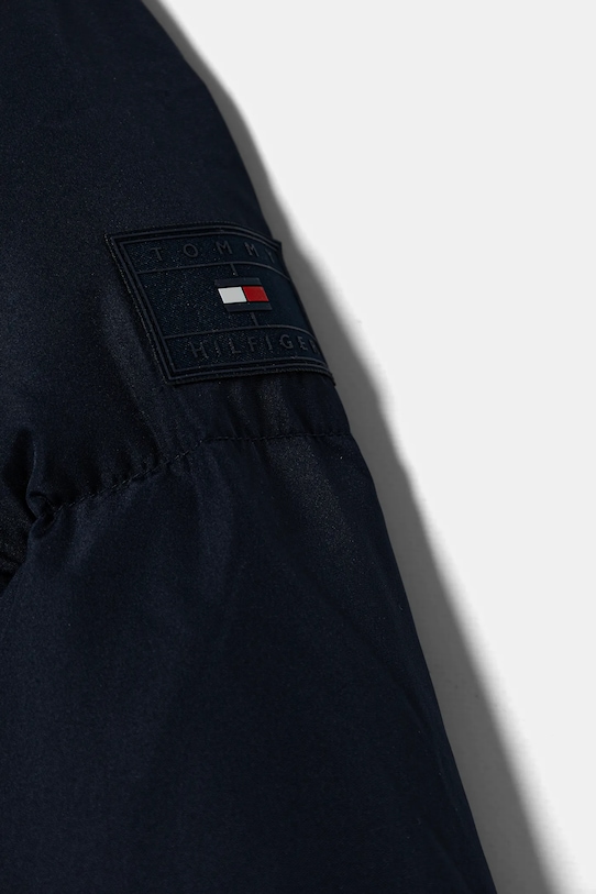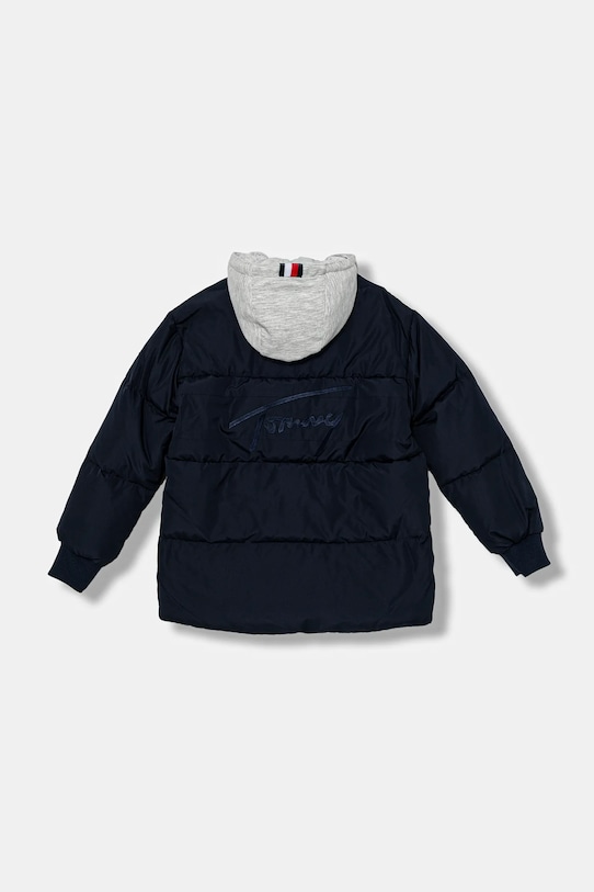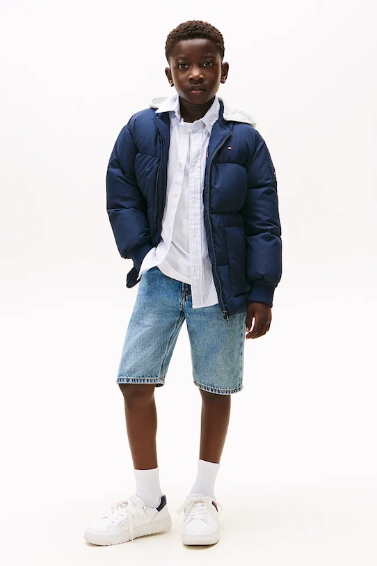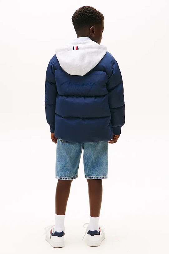 Детская куртка из коллекции Tommy Hilfiger. Утеплённая модель выполнена из стёганого материала. - Свободный покрой, не стесняющий движений. - Модель с капюшоном. - Застежка-молния. - Рукава отделаны удобными эластичными манжетами. - Накладные карманы. - Стеганая модель. - Утепленная модель с подкладкой. - Наполнитель - натуральный пух и перья. - Гладкий материал. - Модель с логотипом бренда.