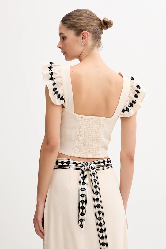 Эта блузка из коллекции Hoss Intropia выполнена из тонкой, неэластичной ткани. Модель выполнена из исключительно комфортного материала с высоким содержанием хлопка. - Простой дизайн, не стесняющий движений. - Алмазный вырез. - Модель с декоративной оборкой. - Модель с декоративной вышивкой. - Модель с эластичной вставкой. - Длина: 42 см. - Ширина под мышками: 39 см. - Размеры указаны для размера: S.