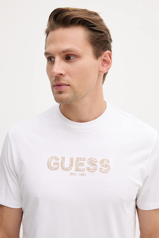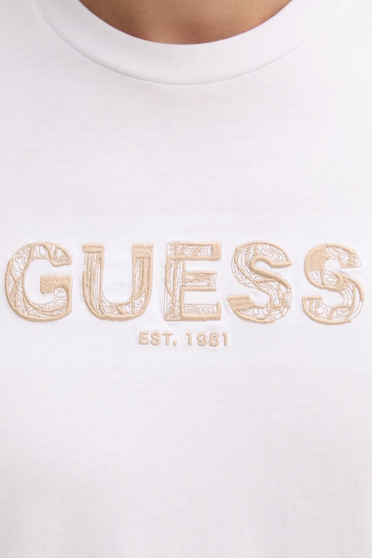 Эта футболка из коллекции Guess выполнена из тонкой, эластичной ткани. Модель выполнена из исключительно комфортного хлопкового материала. - Органический хлопок выращивается без использования вредных химикатов, химических пестицидов и искусственных удобрений. - Обычная посадка. - Классический круглый вырез. - Короткий рукав. - Длина: 69 см. - Ширина под мышками: 53 см. - Размеры указаны для размера: M.