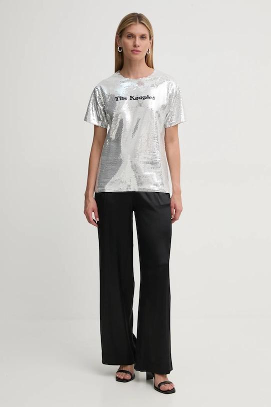 Эта футболка из коллекции The Kooples выполнена из ткани с пайетками. Это эффектный, мерцающий материал. - Свободный крой, обеспечивающий полную свободу движений. - Короткий рукав. - Крой рукава со спущенной линией плеча не ограничивает подвижность. - Классический круглый вырез. - Тонкий, слегка эластичный трикотаж. - Длина: 64,5 см. - Ширина под мышками: 49,5 см. - Размеры указаны для размера: 36.