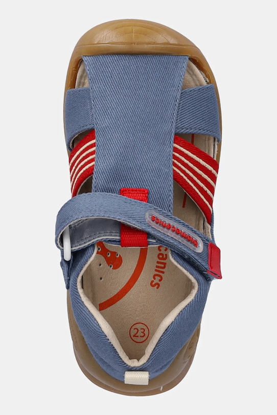 Сандалии из коллекции Biomecanics из текстильного материала. - Они были созданы в сотрудничестве с педиатрами и инженерами Института биомеханики в Валенсии. - Они имеют боковой стабилизатор, который контролирует боковое движение стопы. - Защищенный носок предохраняет пальцы ног от травм. - Застежка-липучка позволяет легко надевать и снимать обувь. - Усиленный задник обеспечивает отличную поддержку лодыжки и пятки.