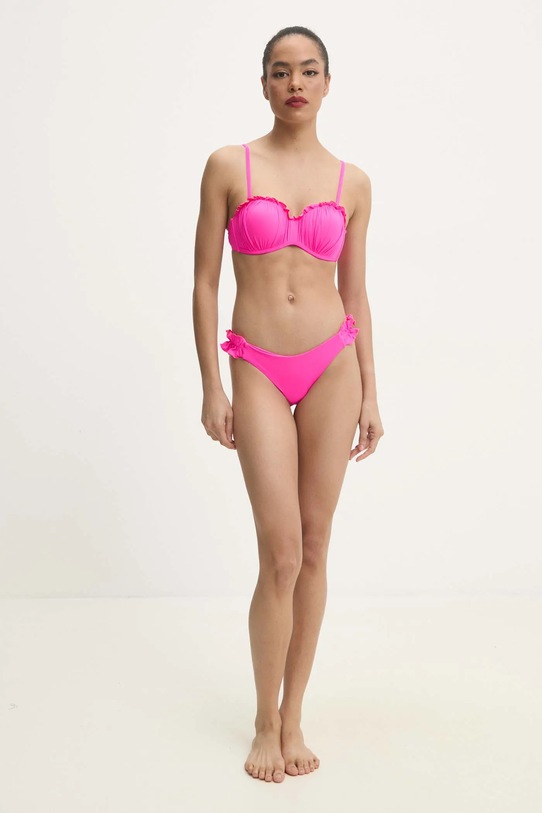 Плавательный бюстгальтер из коллекции Answear.LAB. Изготовлен из эластичной, облегающей ткани. - Регулируемые, съемные ремни. - Встроенные подушечки слегка придают жесткость, дополнительно стабилизируют и приподнимают бюст. - Плоские швы защищают кожу от натирания и раздражения и обеспечивают высокий уровень комфорта во время занятий спортом. - Модель с декоративной оборкой. - Модель с регулируемой шнуровкой.