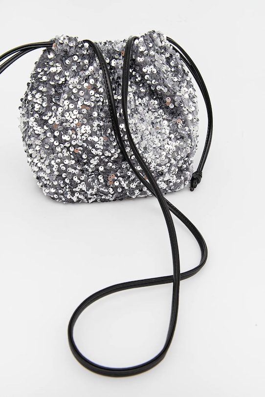 Небольшая сумочка из коллекции Answear.LAB. Эта сумка с застёжкой-застёжкой выполнена из ткани с пайетками. - Камера затягивается шнурками. - Модель на подкладке. - Внутренний накладной карман. - Ремешок длинный, несъемный, нерегулируемый. - Не подходит для формата А4. - Входящий в комплект тканевый чехол защищает изделие от пыли. - Глубина: 11 см. - Высота: 20 см. - Ширина у основания: 19 см.