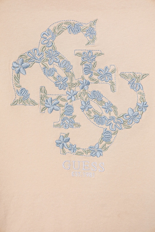 Эта детская футболка из коллекции Guess выполнена из тонкой, эластичной ткани с высоким содержанием хлопка. - Этот продукт изготовлен из сертифицированного органического хлопка, который выращен и собран из растений, не содержащих ГМО, без использования химических удобрений и пестицидов. - Простой дизайн, не стесняющий движений. - Классический круглый вырез. - Короткий рукав. - Модель с декоративной вышивкой.
