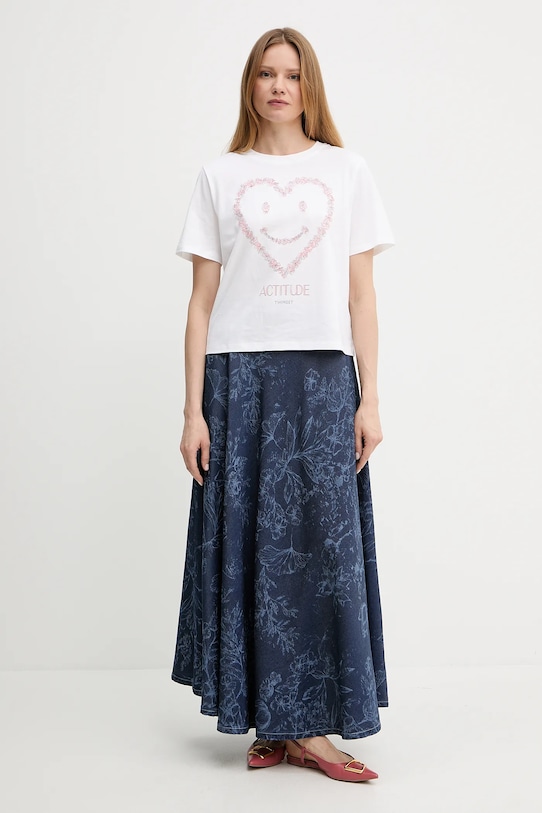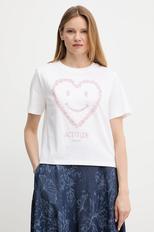 Эта футболка из коллекции Twinset выполнена из тонкой, эластичной ткани на основе дышащего хлопка. - Непринужденный стиль. - Круглый ребристый вырез. - Модель с принтом.