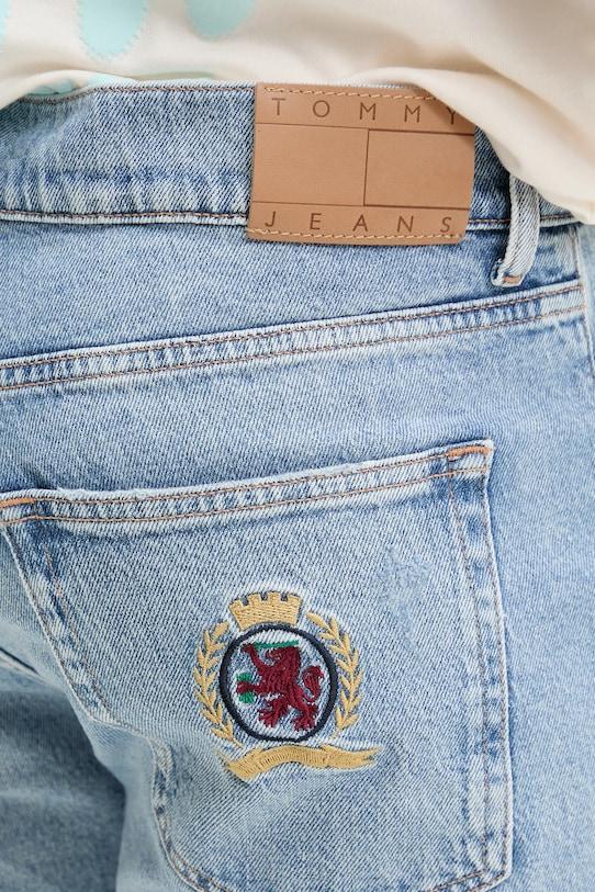 Джинсы из коллекции Tommy Jeans свободного прямого кроя и стандартной талии выполнены из слегка эластичного денима. - Эта модель содержит регенерированные хлопковые волокна. Новые волокна и пряжа производятся из старых текстильных отходов и используются для производства новой одежды. - Застежка на пуговицы и молнию. - Три накладных кармана спереди. - Два накладных кармана на ягодицах. - Декоративные потертости.