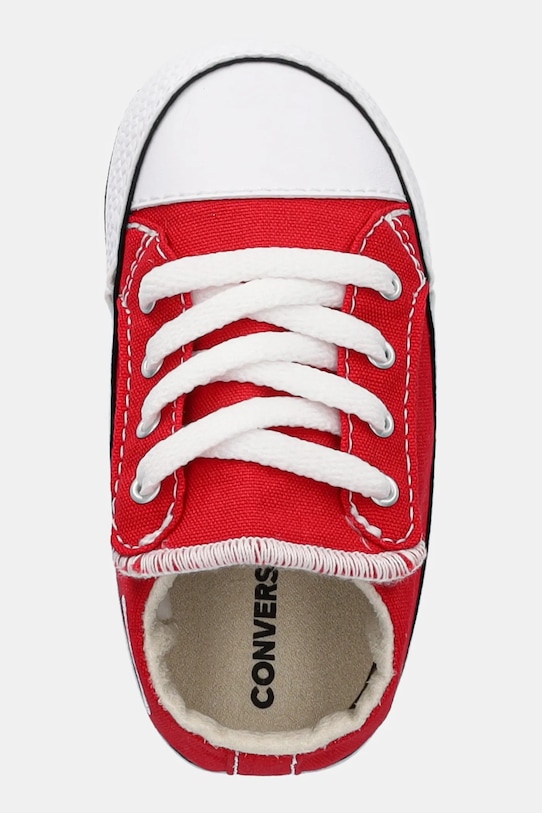 Кеды из коллекции Converse. Изготовлены из текстильного материала. - Круглый, прорезиненный носок. - Жесткий задник стабилизирует пятку и удерживает ногу в обуви, не давая ей выскальзывать во время движения. - Застежка-липучка позволяет легко надевать и снимать обувь. - Текстильная внутренняя часть комфортна для ног и облегчает содержание обуви в чистоте. - Резиновая подошва прочная и устойчивая к повреждениям.