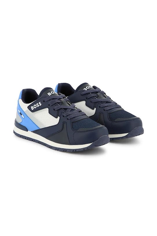 Детские кроссовки из коллекции BOSS. Изготовлены из комбинации экокожи и текстиля. - Круглый нос. - Резиновая подошва прочная и устойчивая к повреждениям. - Жесткий верх обеспечивает устойчивость. - Усиленный задник. - Классическая шнуровка позволяет индивидуально подогнать обувь по ноге. - Текстильная внутренняя часть комфортна для ног и облегчает содержание обуви в чистоте. - Декоративные детали.