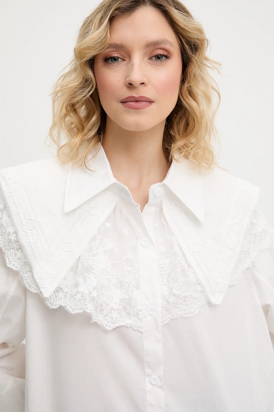 Рубашка из коллекции Answear.LAB из хлопковой, дышащей ткани. - Рубашка прямого кроя мягко облегает фигуру, но не подчеркивает ее, обеспечивая свободу движений. - Удобная застежка на кнопки позволяет легко надевать и снимать. - Модель с декоративной вышивкой. - Нижний край отделан завязками, обеспечивающими индивидуальную посадку. - Длина: 63 см. - Ширина под мышками: 56 см. - Указаны размеры: S/M.