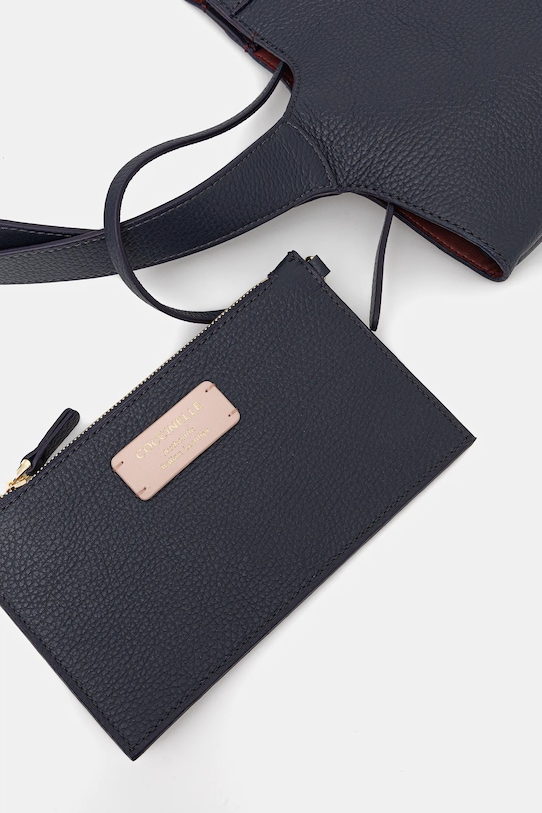 Сумка среднего размера из коллекции Coccinelle. Модель на молнии, выполнена из натуральной кожи. В комплект входит небольшой мешочек. - Магнитная застежка. - Модель без подкладки. - Не подходит для формата А4. - Входящий в комплект тканевый чехол защищает изделие от пыли. - Короткие ручки для удобной переноски в руке или на плече. - Глубина: 12 см. - Высота: 24 см. - Ширина у основания: 30 см.