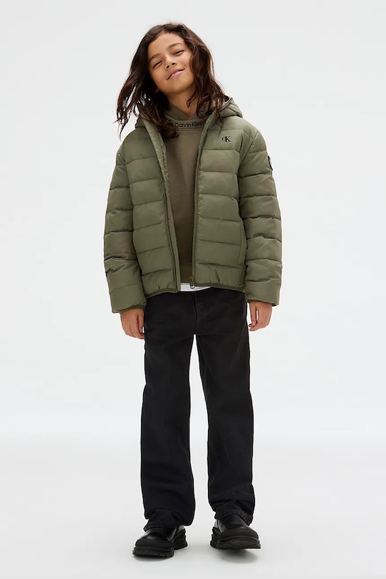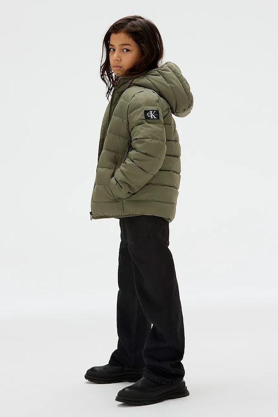 Детская пуховая куртка из коллекции Calvin Klein Jeans. Куртка с лёгким утеплением выполнена из стёганого материала. - Эта модель частично изготовлена из переработанного полиэстера. - Простой дизайн, не стесняющий движений. - Встроенный капюшон обеспечивает дополнительное тепло и защиту при необходимости. - Застежка-молния. - Два боковых накладных кармана. - Рукава отделаны удобными эластичными манжетами.