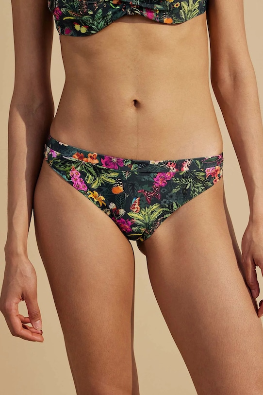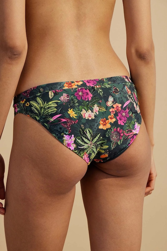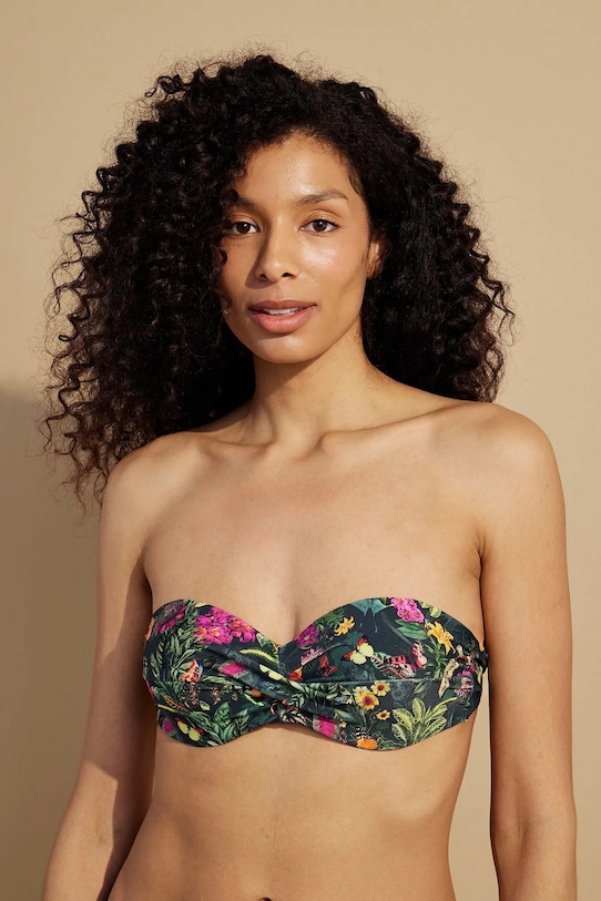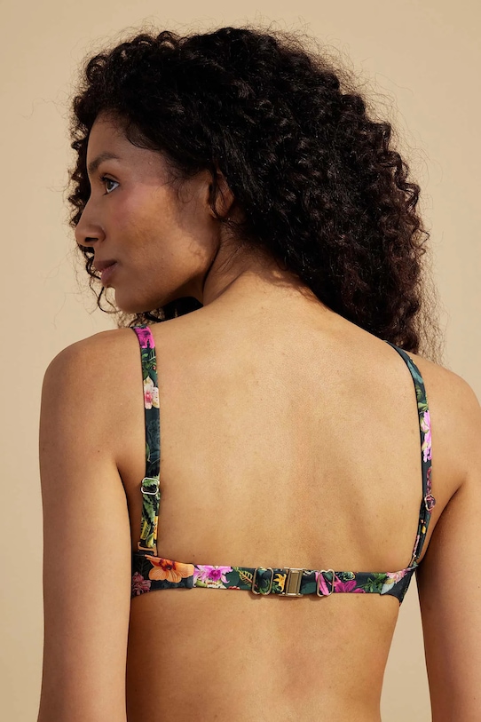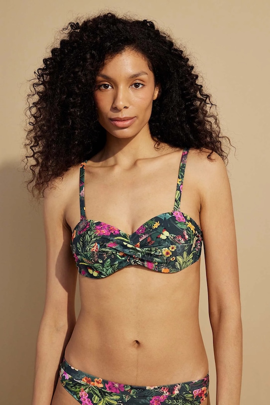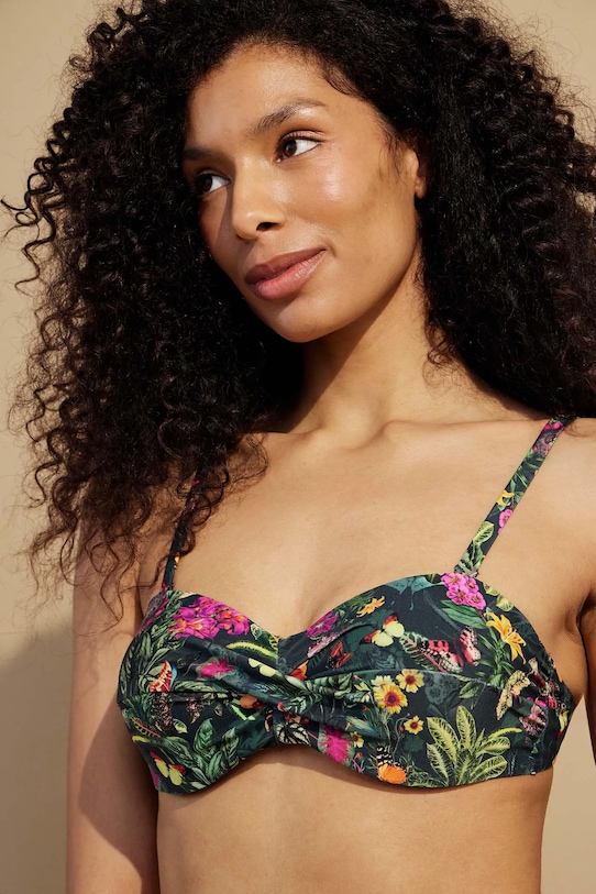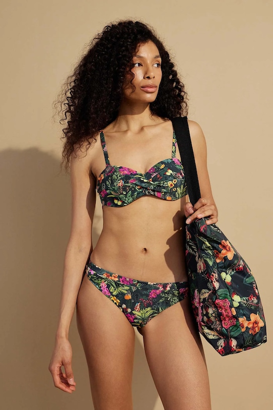 Раздельный купальник из коллекции Medicine. Изготовлен из ткани с узором. - В комплект входят плавки с обычной талией и бюстгальтер с подушечками для чашек. - Чашечки укреплены косточками. - Регулируемые, съемные ремни. - Регулируемая застежка на пряжке сзади. - Декоративные оборки. - Дополнительный слой материала в виде подкладки. - Узорчатый материал. - Узор с растительными и животными мотивами.