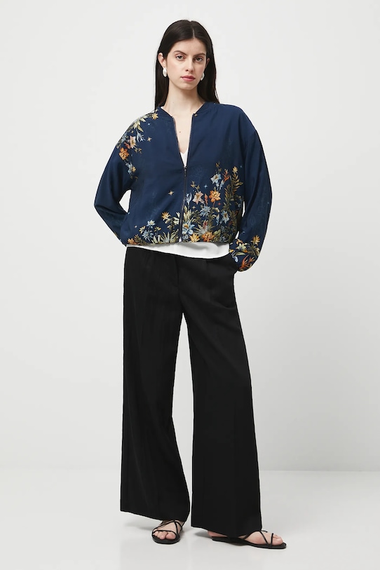 Куртка из коллекции «Медицина». Изготовлена из узорчатой ткани. - Свободный покрой. - Длинный рукав. - Заниженная линия плеча. - Рукава и нижний край отделаны резинкой. - Воротник-бомбер. - Застежка-молния. - Накладные карманы. - Модель на подкладке. - Узорчатая ткань. - Длина рукава (от воротника): 72 см. - Длина: 56 см. - Ширина груди: 60 см. - Размеры указаны для размера: S.