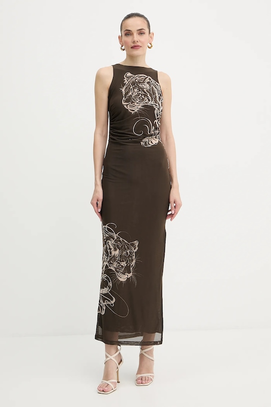 Это платье из коллекции Guess выполнено из тонкого эластичного трикотажа. Содержание полиэстера делает ткань менее мнущейся. - Содержит переработанный пластик. - Приталенный крой с привлекательными оборками. - Классический круглый вырез. - Модель с открытой спиной. - Модель с аппликацией. - Ширина под мышками: 42 см. - Ширина талии: 34 см. - Длина: 145 см. - Размеры указаны для размера: S.