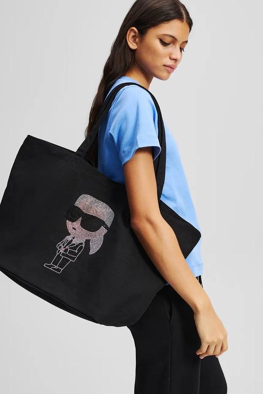 Большая сумка-шоппер из коллекции Karl Lagerfeld. Изготовлена из хлопковой ткани, застегивается на молнию.