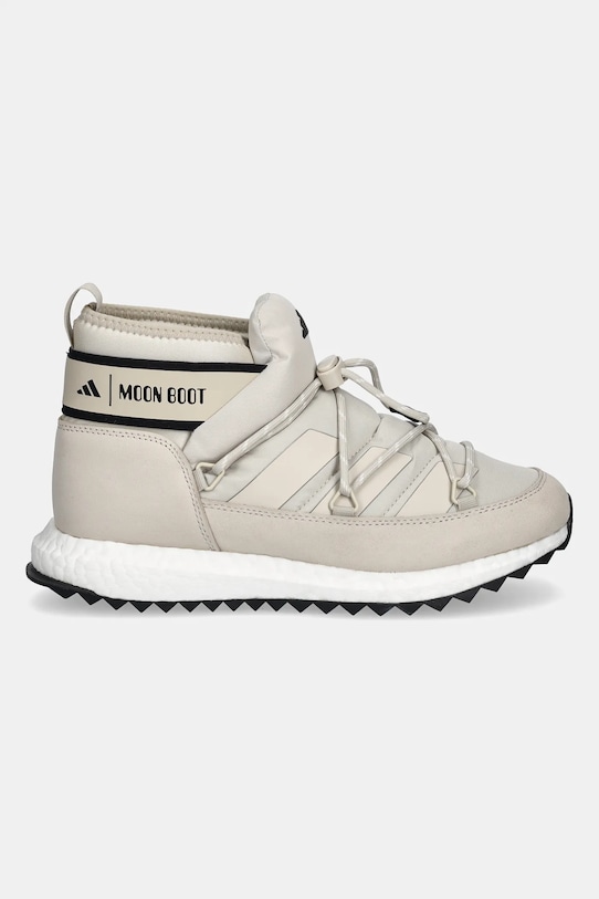 Снегоступы из коллекции adidas. Коллекция, изготовленная из комбинации синтетических и текстильных материалов, является результатом сотрудничества adidas и Moon Boot. - Круглый, жёсткий носок. - Текстильная внутренняя часть комфортна для ног и облегчает содержание обуви в чистоте. - Усиленный задник обеспечивает отличную поддержку лодыжки и пятки. - Верх затягивается шнурками. - Нескользящая рифленая подошва.