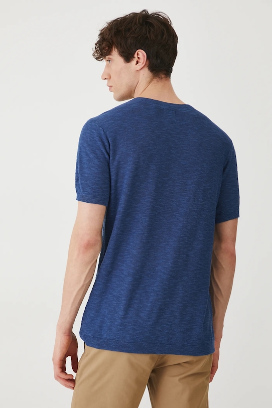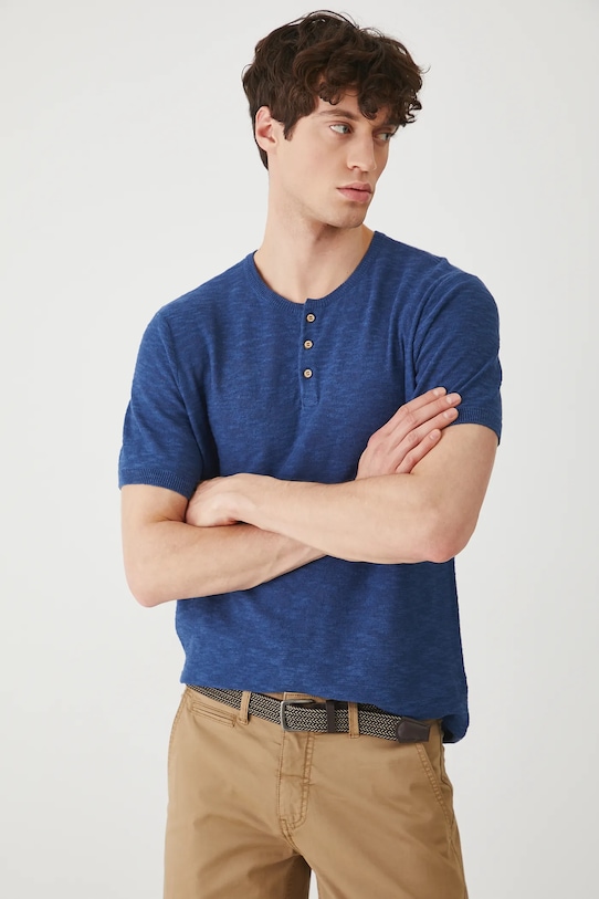 Футболка из коллекции Medicine. Изготовлена из трикотажного полотна с добавлением льна. - Материал с добавлением льна обеспечивает комфорт и воздухопроницаемость. - Обычная посадка. - Короткий рукав. - Круглый вырез. - Короткая планка с пуговицами. - Отделка ребер. - Материал с текстурой. - Меланжевый трикотаж. - Длина: 74 см. - Ширина груди: 56,5 см. - Размеры указаны для размера: L.