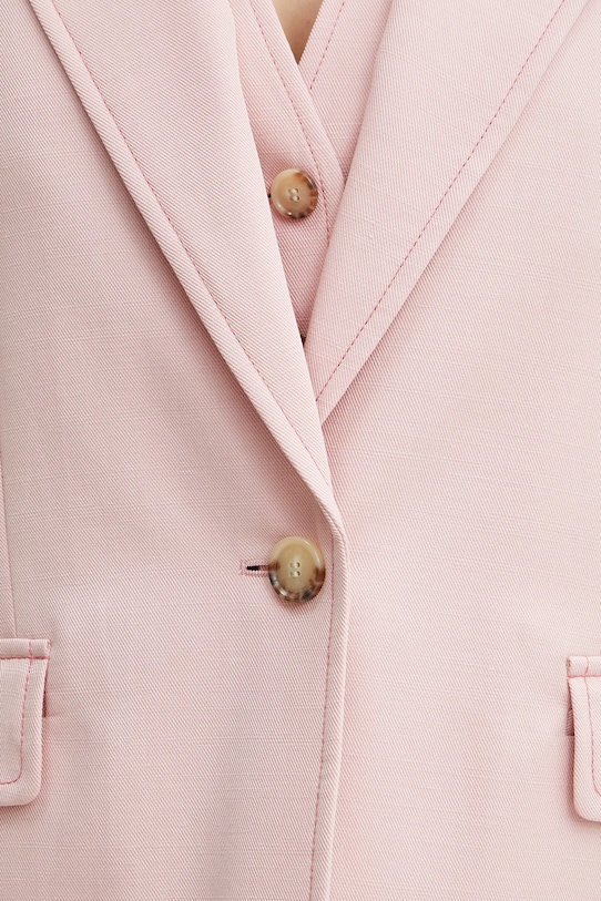 Пиджак из коллекции BOSS Orange из смесовой льняной ткани. Лиоцелл — это шёлкоподобная ткань из древесной целлюлозы. Этот материал производится экологичным способом, без использования токсичных веществ. - Застежка на пуговицы. - Модель с карманами, декорированными клапанами. - Модель на подкладке. - У него есть щель. - Длина: 75 см. - Ширина под мышками: 51 см. - Размеры указаны для размера: 36.
