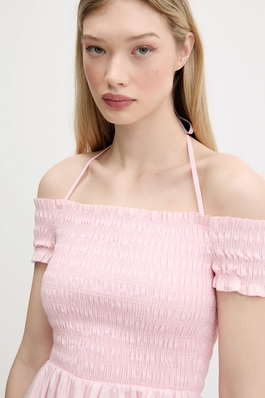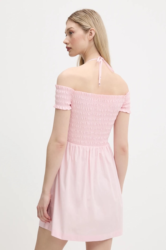Это платье из коллекции Tommy Jeans выполнено из тонкой, неэластичной ткани. Модель выполнена из исключительно комфортного хлопкового материала. - Этот продукт частично изготовлен из органического хлопка. - Приталенный верх и расклешенный низ. - Нерегулируемые, несъемные бретели с завязками на шее. - Ширина под мышками: 33 см. - Ширина талии: 31 см. - Длина: 70 см. - Размеры указаны для размера: S.