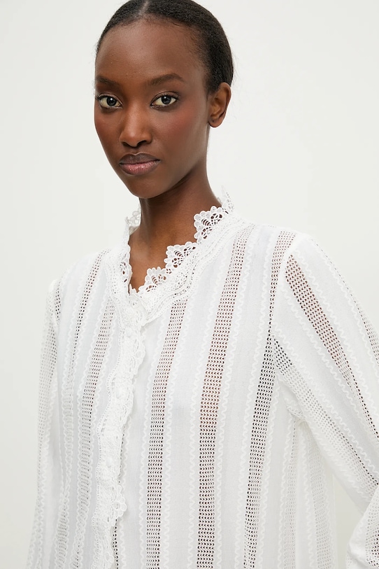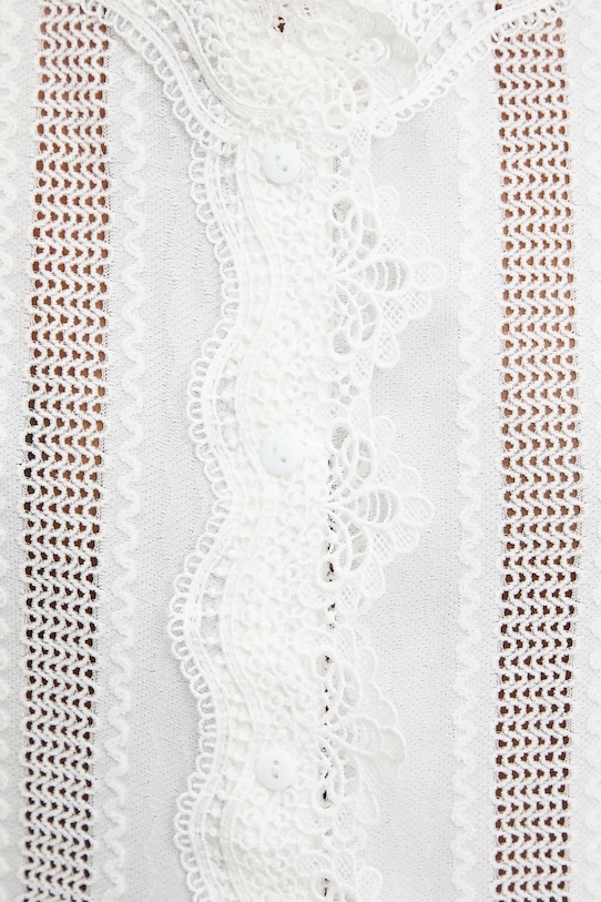 Эта рубашка Answear.LAB сшита из тонкой, эластичной ткани, изготовленной из дышащего материала с высоким содержанием вискозы. - Простой дизайн, не стесняющий движений. - Длинные, пышные рукава. - Рукава отделаны узкой эластичной манжетой. - Кружевные вставки. - Удобная застежка на кнопки позволяет легко надевать и снимать. - Длина: 62 см. - Ширина под мышками: 51 см. - Указаны размеры: S/M.